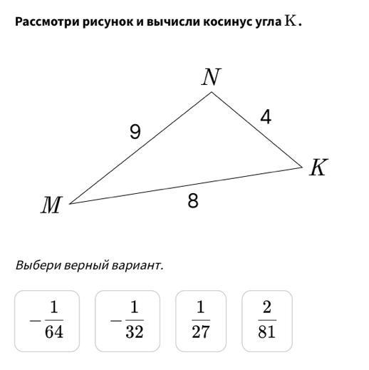 За теоремою косинусів: