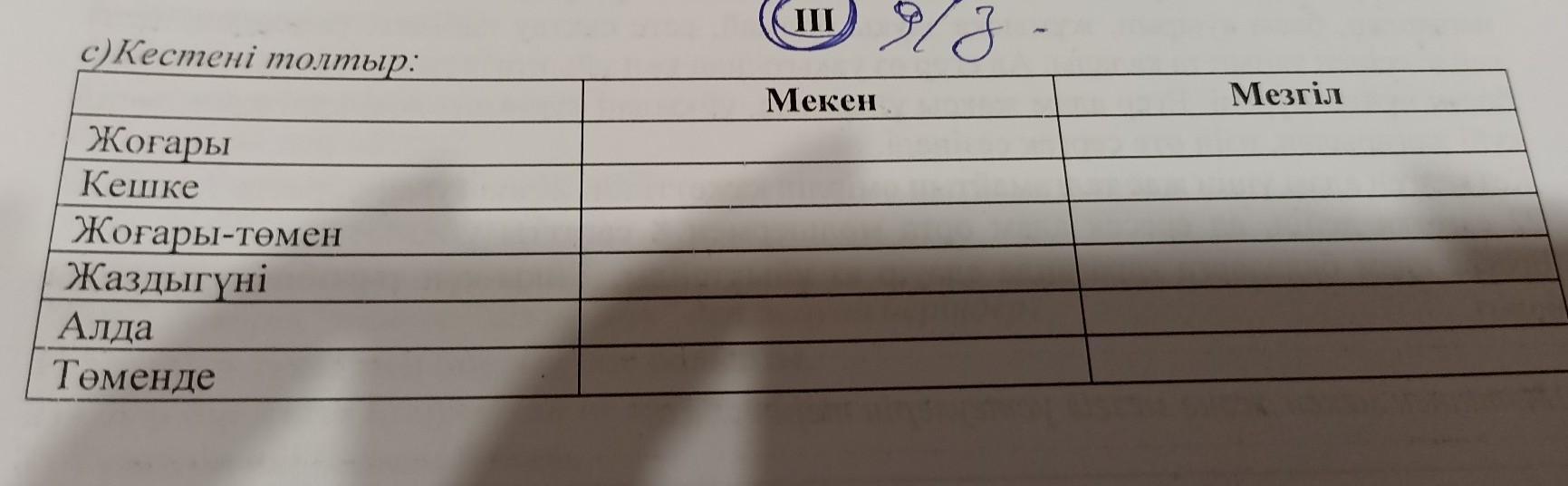 Мекен:жоғары,жоғары-төмен,төменде,алда.