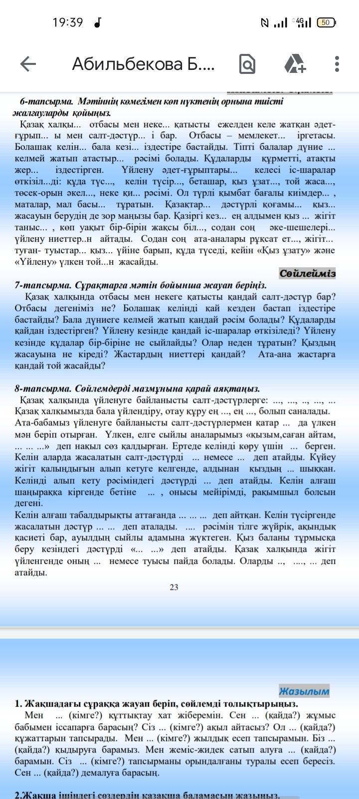 Қыз алып қашу,Сырға салу,тәтті шәй,бет ашар. Ең дәстүрлі,ең көне.Қалынмалғада.Келінім сен тында.Қалынмал берген.үйлену немесе қыз алу.Алып қашу дейді.Орамал тағады.бақыттты бол деп айтқан.Неке қию.Неке қию рәсімін.Бет ашар.Нағашы.Бажа,Қайын ене,қайын ата