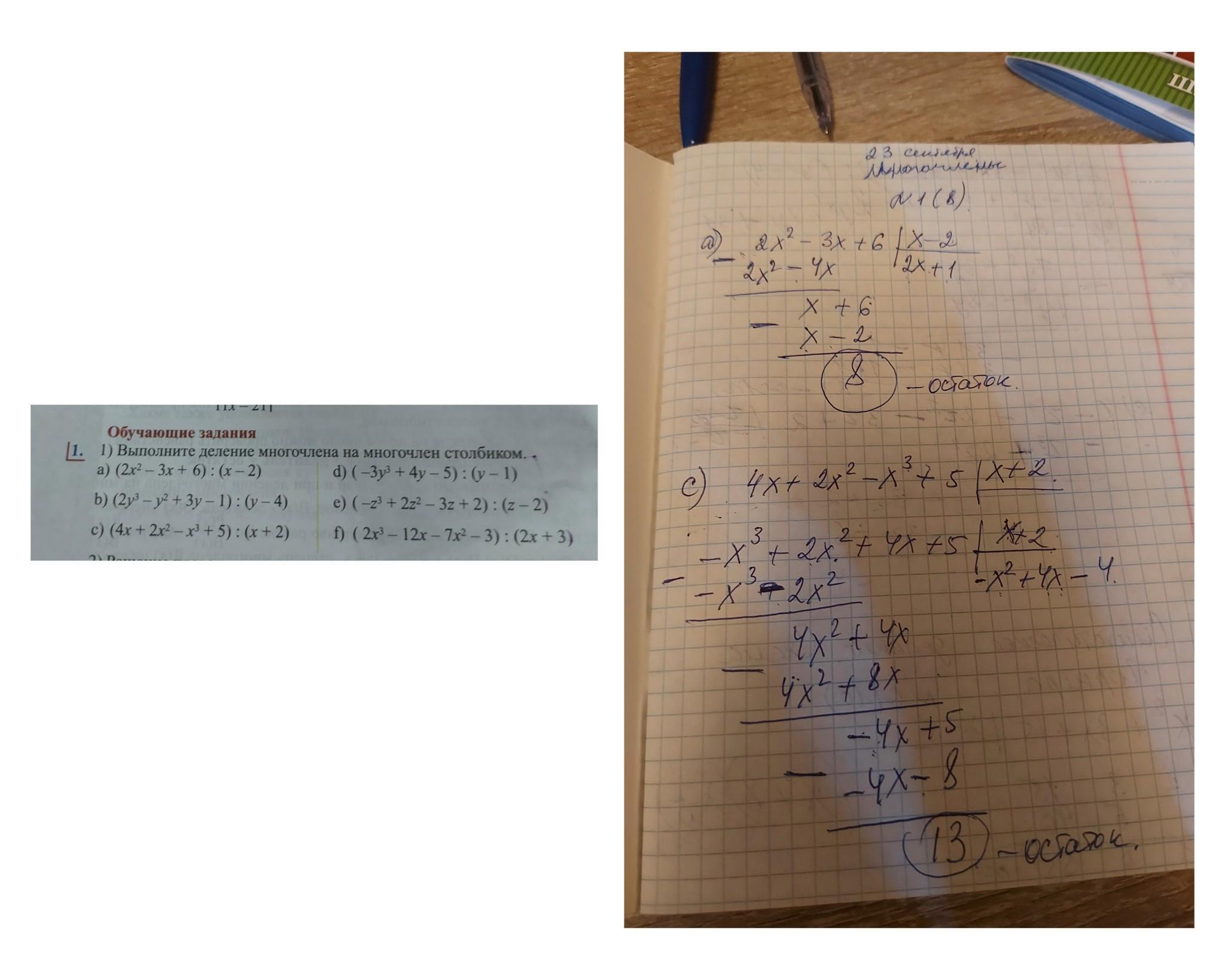 В делимом стоит многочлен третьей степени. В делителе – многочлен первой степени.