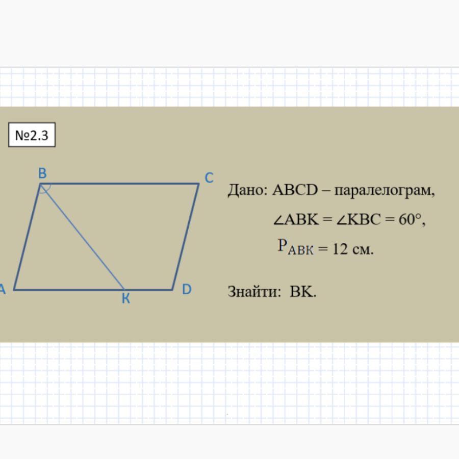 ∠А=180-2×60=60°, значит ∆ АВК - равносторонний.