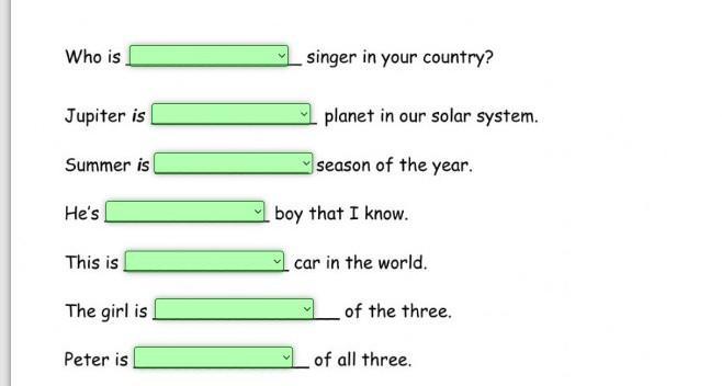 6.Это девушка (хучьшая\лучшая\самая красивая) из трех. - (worst\best\most beautiful)