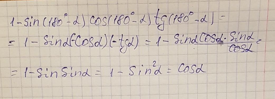 спростіть вираз сosa/1-sin(180°-a)-cos(180°-a)/1+sin(180°+a)
