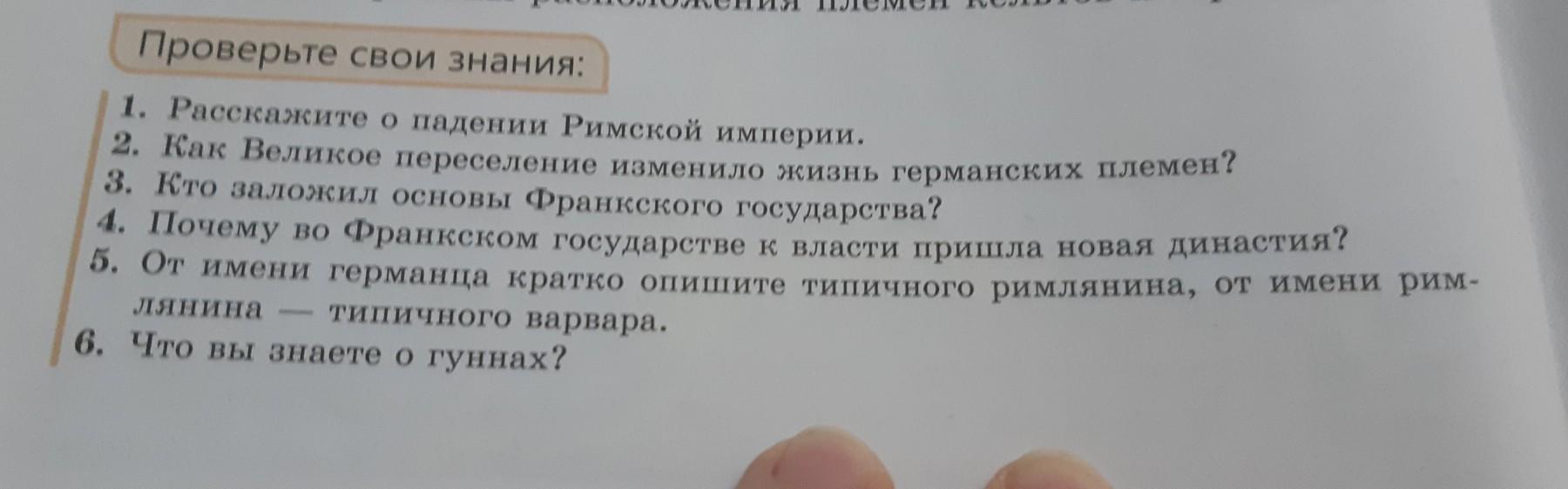 6) Гу́нны — кочевой народ, вторгшийся в Европу из степей Центральной Азии в конце IV века. Их нападение стало первоначальным толчком для Великого переселения народов