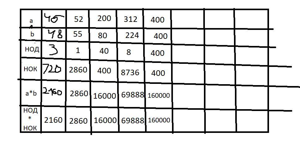Пошаговое объяснение: закономерность - произведение a и b равно произведению НОД и НОК.