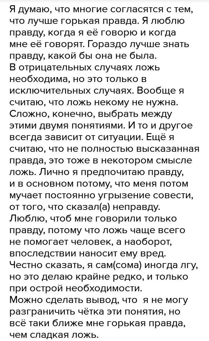 что лучше горькая правда или сладкая ложь?лучше знать сразу правду,ведь если ты узнаешь ее позже,то тебе будет намного больнее ее воспринимать. правда всегда выйдет на свет,она никогда не останется скрытой. поэтому бесполезно от нее убегать,она все равно нас догонит.правда будет всегда будет лучше.