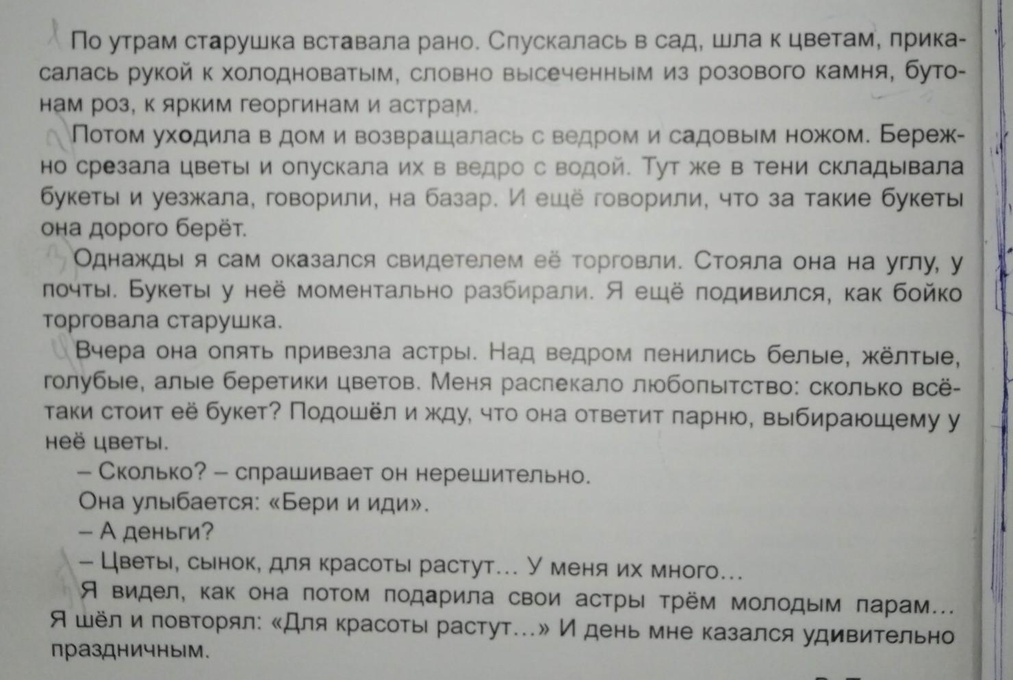 1. Работа с текстом 1. Рассмотрите репродукцию картины Гульшат Гильмановой «Астры». Какие впечатления она у вас вызывает? 2. Подумайте, о чём может идти речь в рассказах на следующие темы: «Астры», «Как старушка продавала астры». «Цветы растут для красоты»?