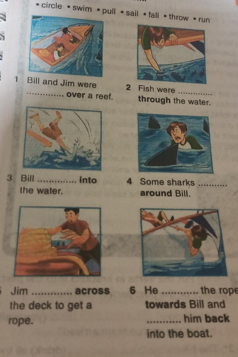 Bill and Jim went on a motorboat to see and feed different kinds of fish. But due to negligence or inattention of Bill, he fell into the water. Jim, of course, looked at the fact that everything was fine with Bill and everything seemed to be fine, but because of the fluctuations in the water, sharks swam. Bill was in a panic, as was Jim. But Jim quickly realized that he needed to save his friend and took the rope as quickly as possible and threw the other end of the rope to Bill and quickly pulled him out of the sharks' captivity. And they quickly left.