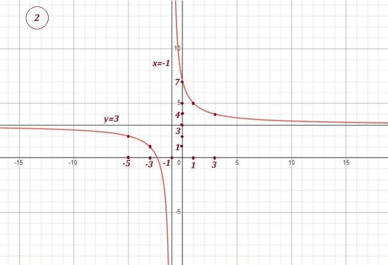 Гипербола имеет асимптоты у=3 и х= -1 ., проходит через точки