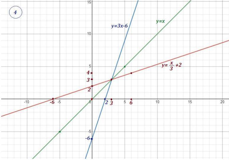 4) а) Найти обратную функцию для . Она проходит через точки (0;-6) , (2;0) .