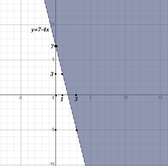 Заданная область - это полуплоскость, лежащая выше прямой у=7-4х .