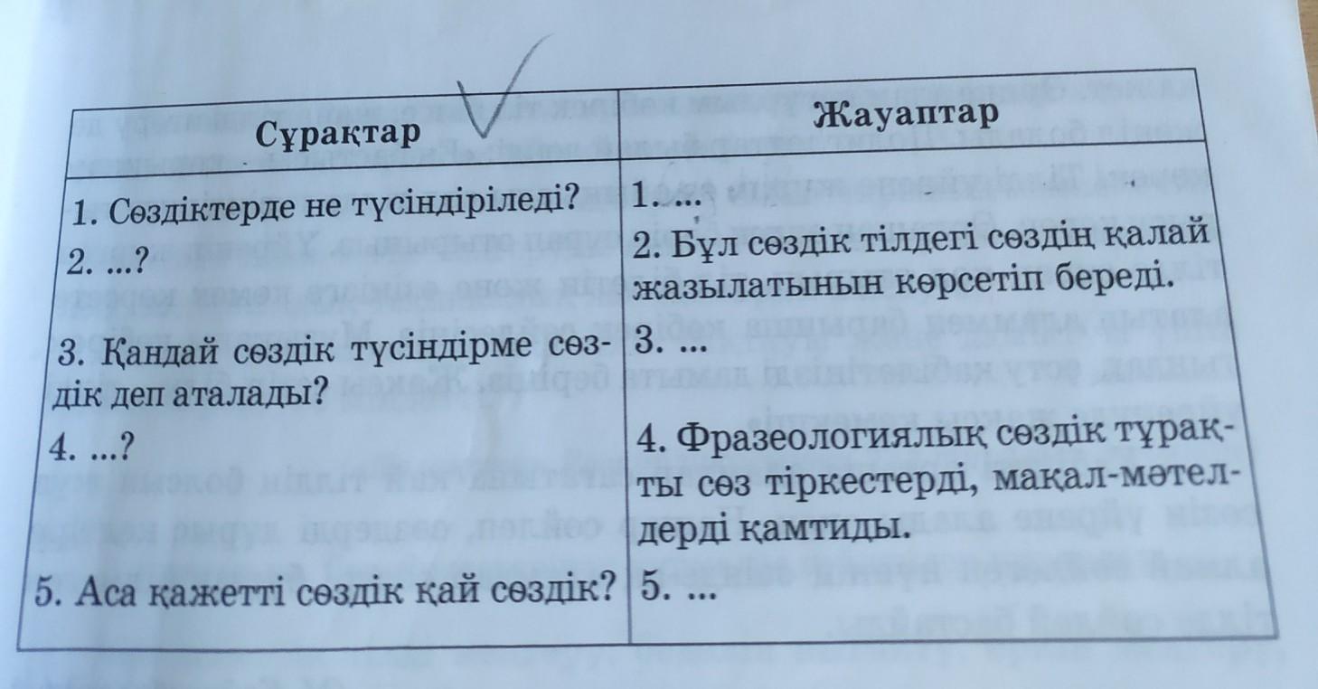 3-тапсырма. Бір-біріңмен өзара сөйлесіңдер. Көп нүктенің орнына тиісті сұрақты немесе жауапты койып айтыңдар. Дәптерлеріңе жазып алындар.