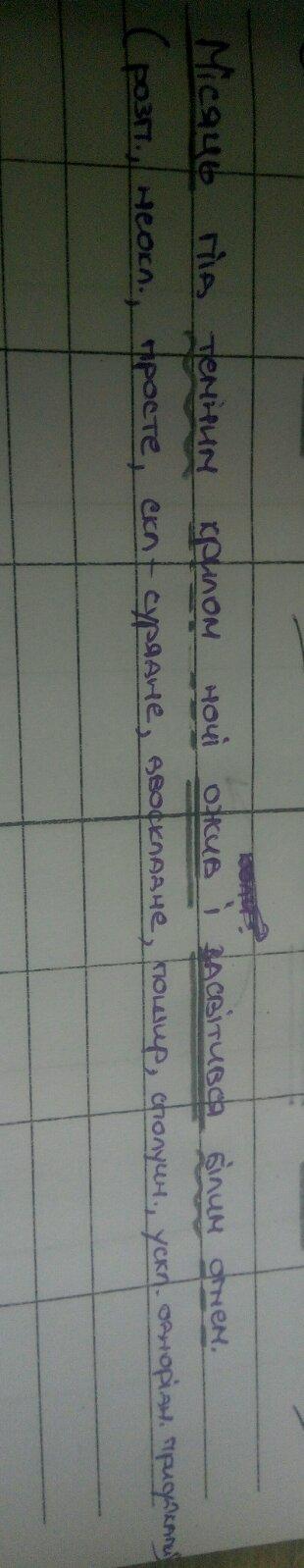 Виконайте повний синтаксичний розбір речення Місяць під темним крилом ночі ожив і засвітився білим огнем.