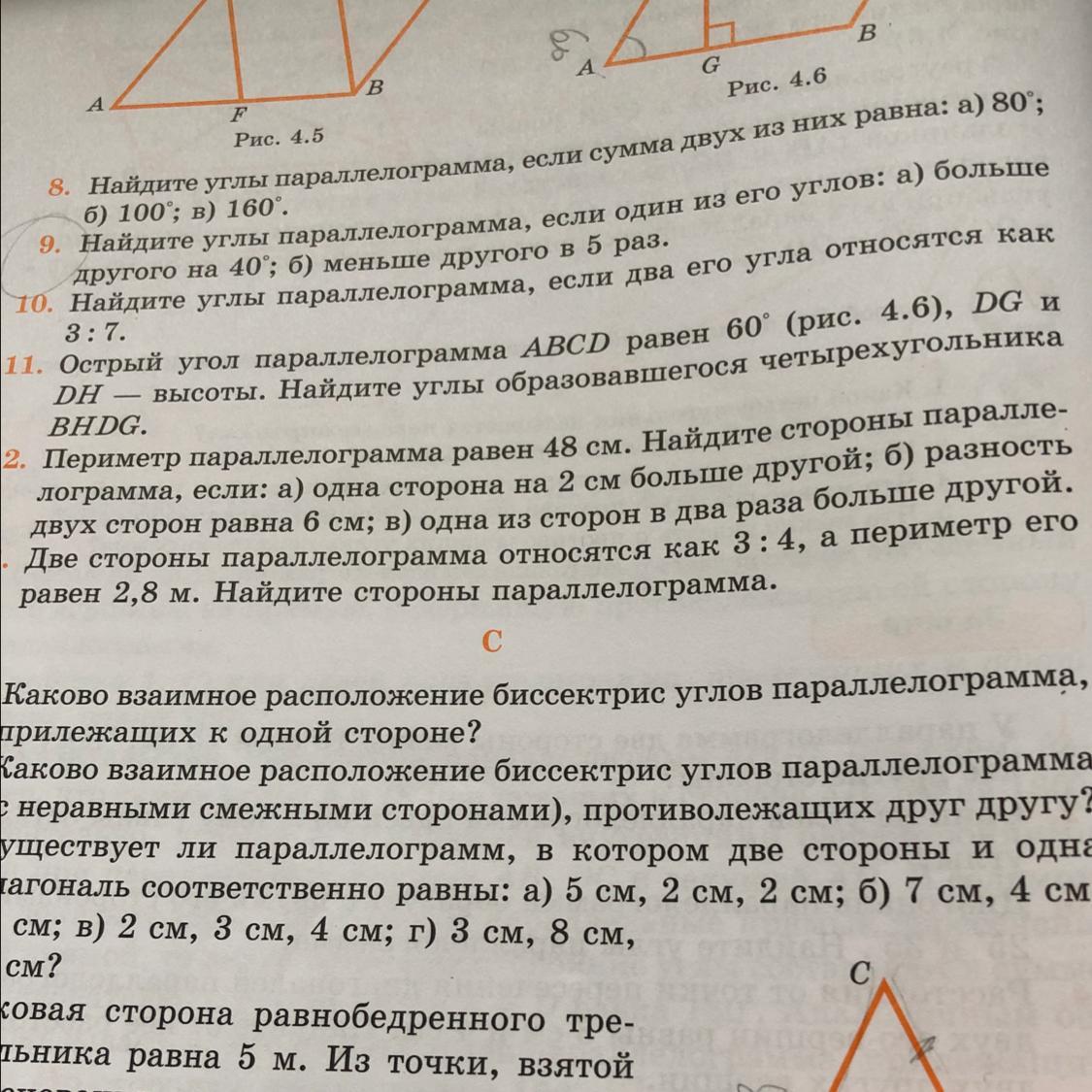 10: Вводим коэффициент пропорциональности k(k>0). Углы параллелограмма относятся как 3:7 и равны 3k и 5k соответственно. Сумма двух углов параллелограмма — (3k+5k) или же, согласно теории, 180°.