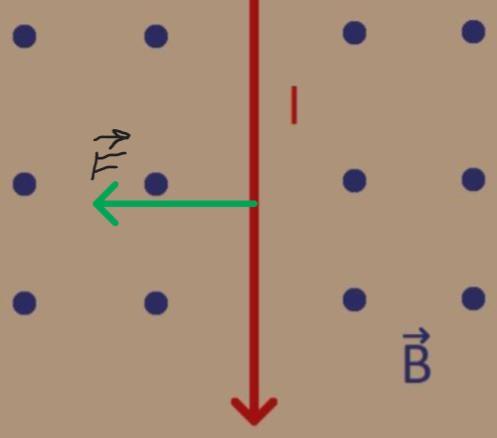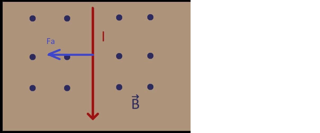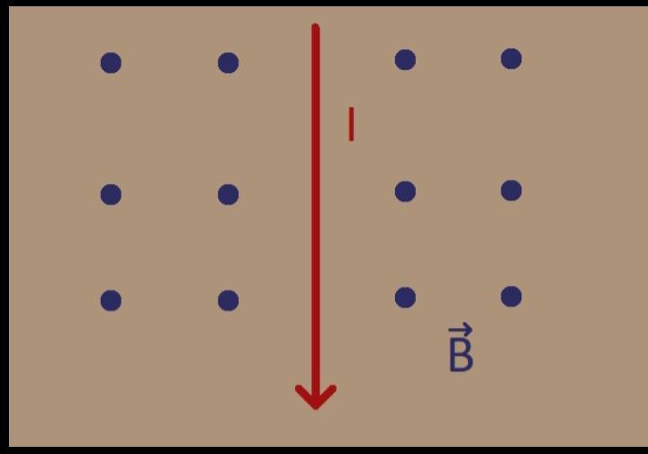 Максимальний бал: 12 балів 1. (Бали: 2) На рисунку зображено напрямок струму в провіднику та напрямок ліній магнітної індукції магнітного поля. Визначте напрямок сили Ампера, що діє на провідник. Відповідь представте у вигляді рисунка.
