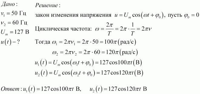 4. Запишите закон изменения напряжения с течением времени для промыш- ленной сети РК. Как изменится закон в применении к странам, промыш- ленная частота тока в которых 60 Гц, максимальное напряжение 127 В?