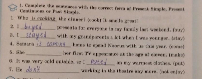 1. Complete the sentences with the correct form of Present Simple, Present Continuous or Past Simple.