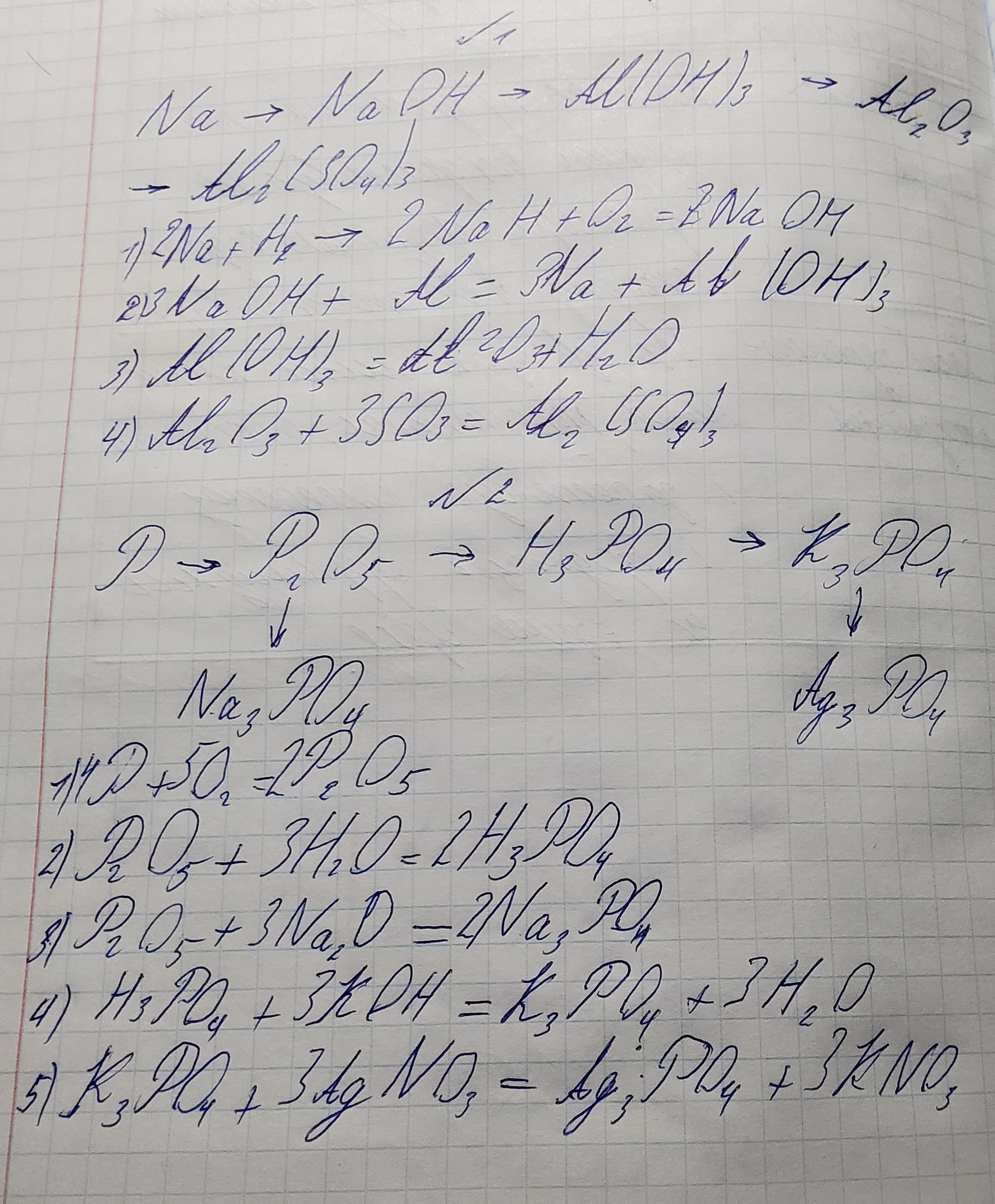 1. Натрій →Натрій гідроксид →Алюміній гідроксид →Алюміній оксид →Алюміній сульфат