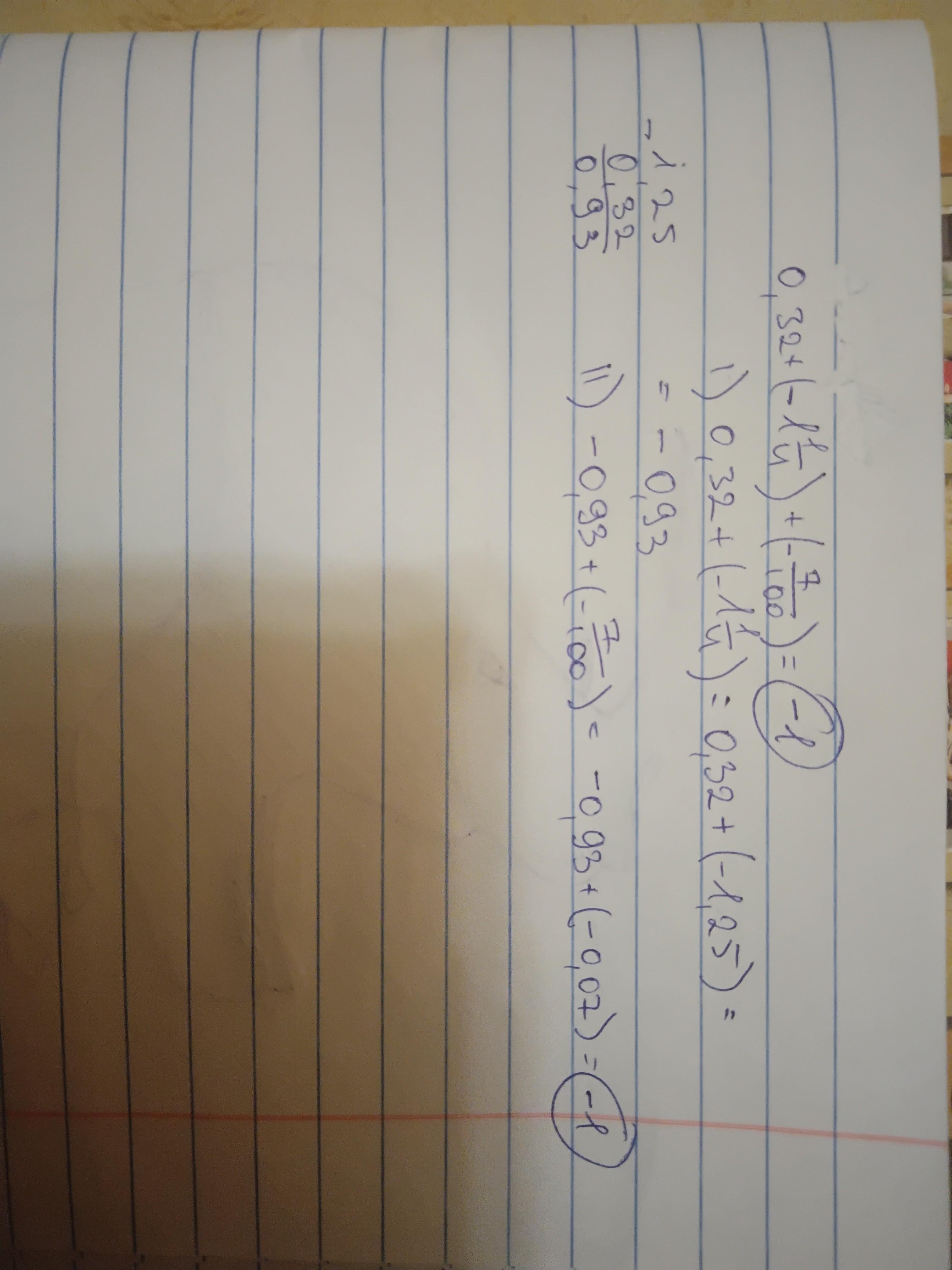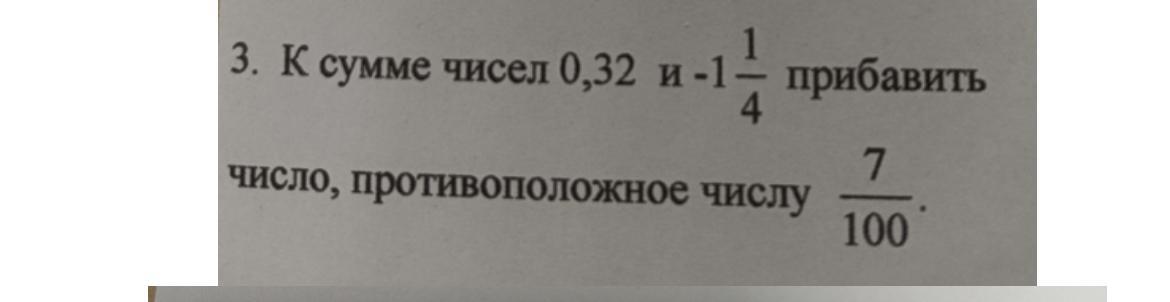 У сумме чисел о,32 и -1 1/4 прибавить число, противоположное числу 7/100