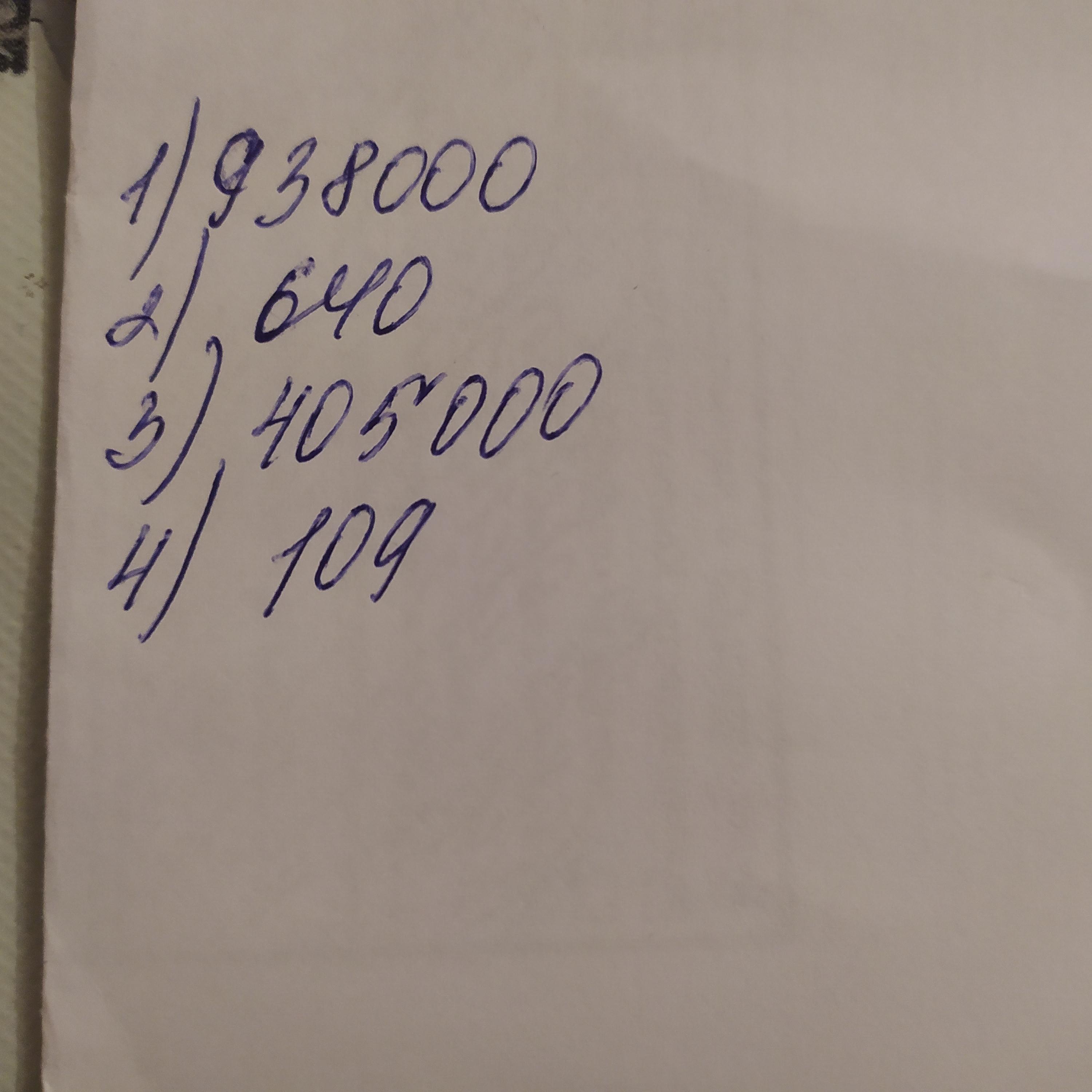 1. Запиши числа. девятьсот тридцать восемь тысяч шестьсот сорок четыреста пять тысяч сто девять