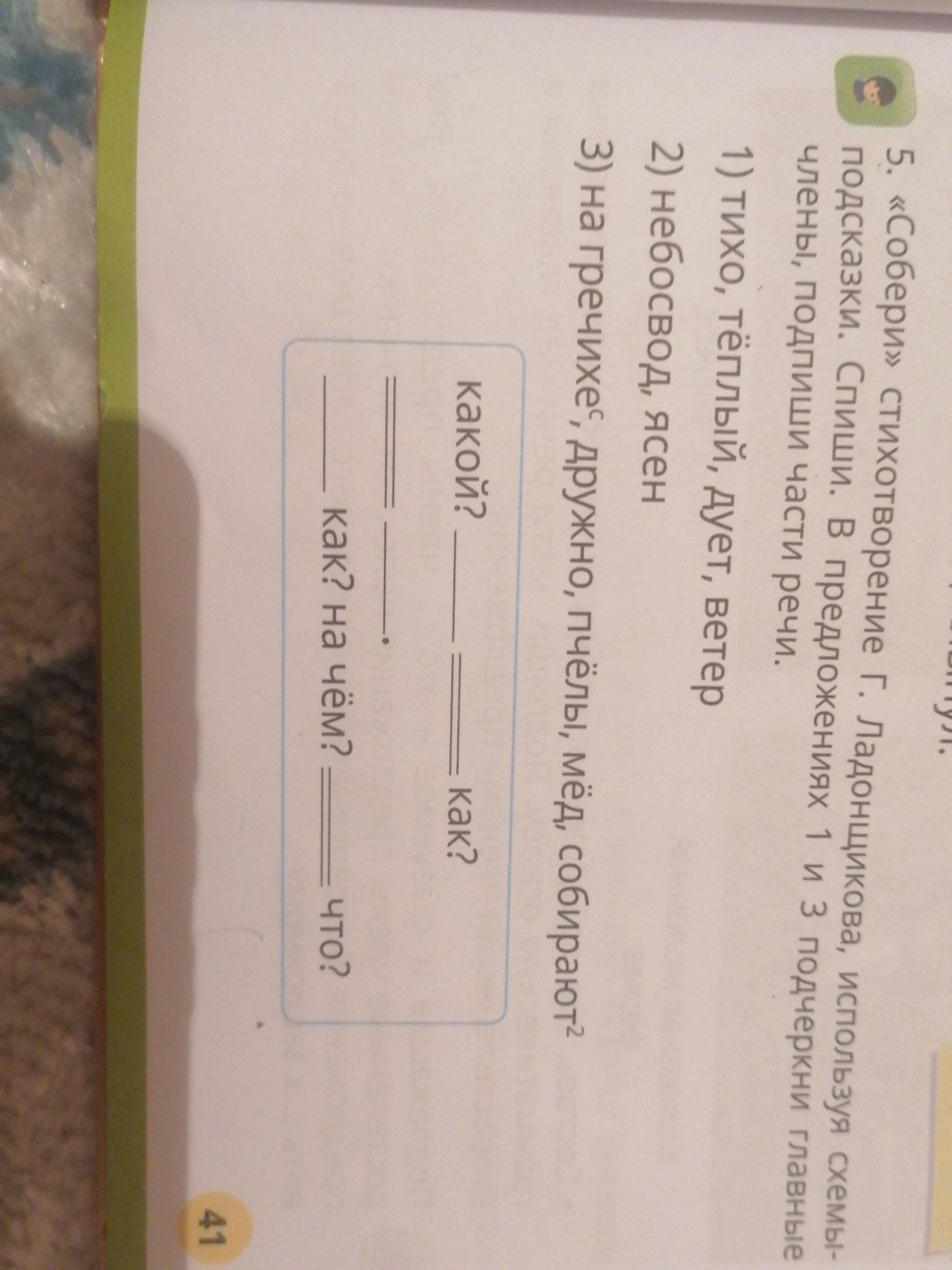3)Пчёлы тихо на гречихе собирают мёд(пчелы(сущ)-одной чертой,собирают -(глагол) ,двумя чертами)