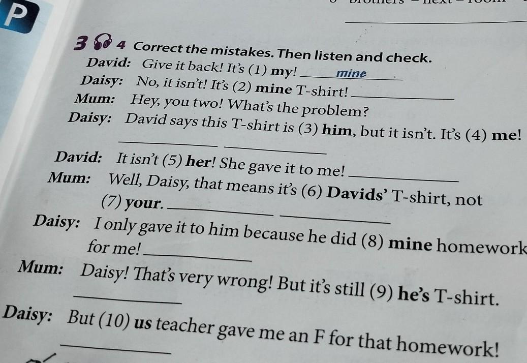 Ответ:2my 3 his 4 mine 5 her 6 David’s 7.yours 8.my 9. his 10. our