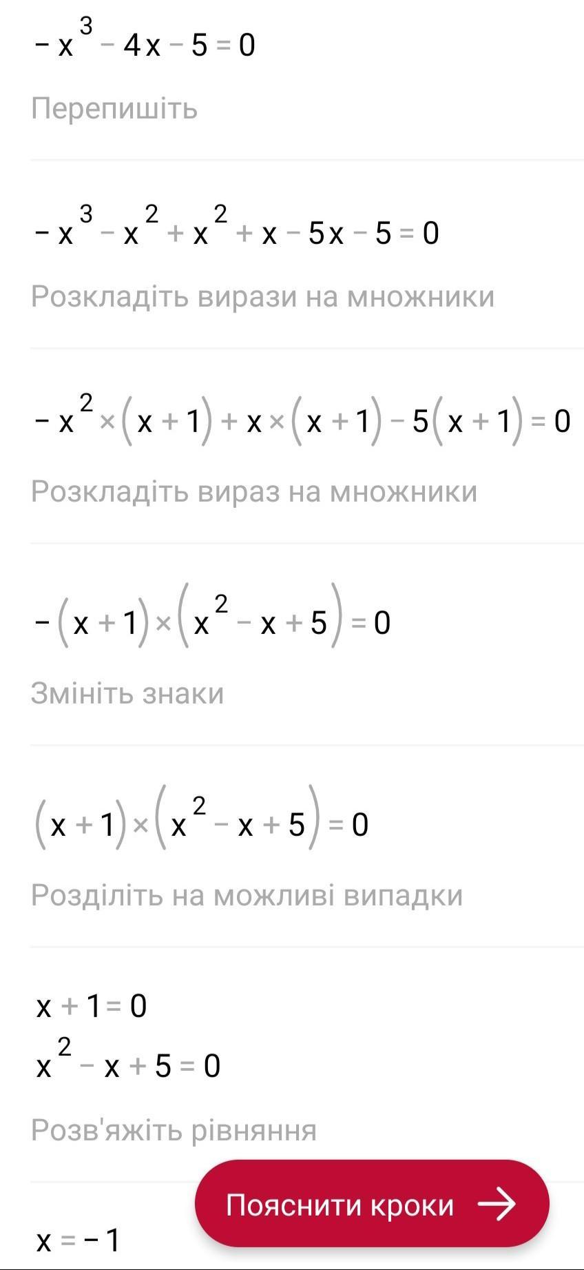 Спочатку пишеш рівняння -х³-4х = 5 і потім розв'язання що я прикріпила