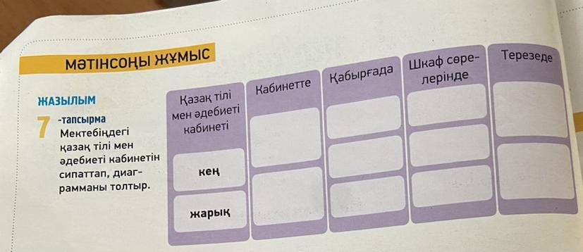 Шкаф сорелерінде даптерлер,апайдын сабакка катысты заттары, кітаптар бар.