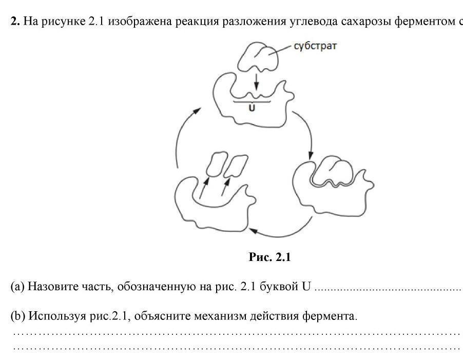 1. Буквой U обозначен активный центр фермента, куда подходит субстрат и где происходит собственно реакция.