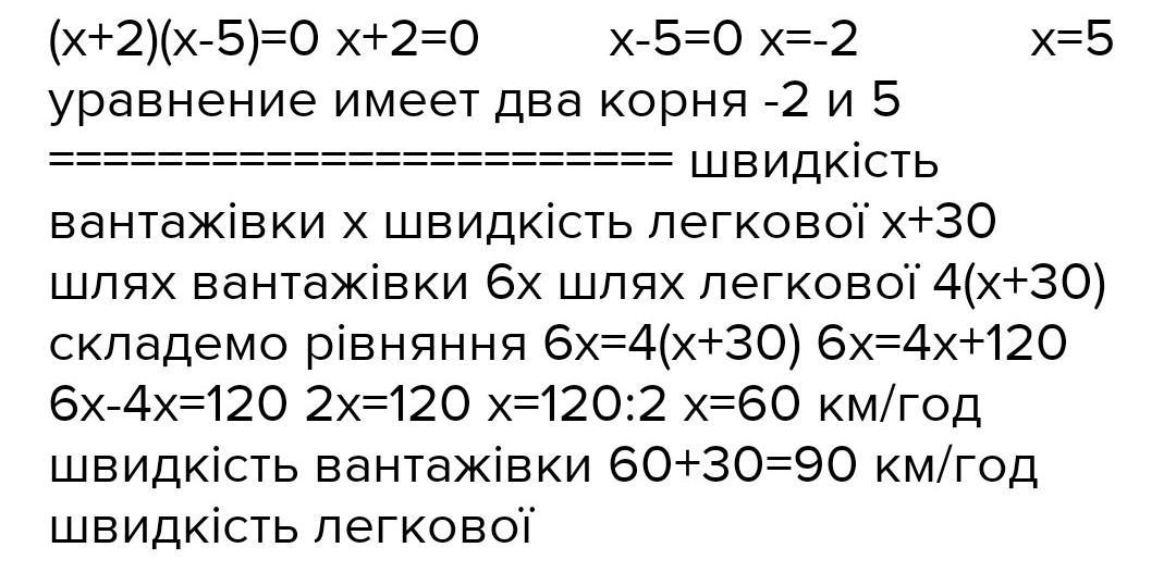 Легковий автомобіль за 4 год пройшов шлях, який вантажівка долає за 6 год. Знайти швидкість кожного автомобіля, якщо швидкість вантажівки на 30 км / год менша за швидкість легкового автомобіля.