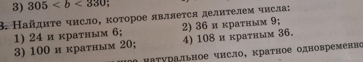 4). Делителем числа 108 и кратным числа 36 являются числа 108 и 36. Например, 108 : 36 = 3 и 36 : 36 = 1 или 108 : 108 = 1 и 108 : 36 = 3.