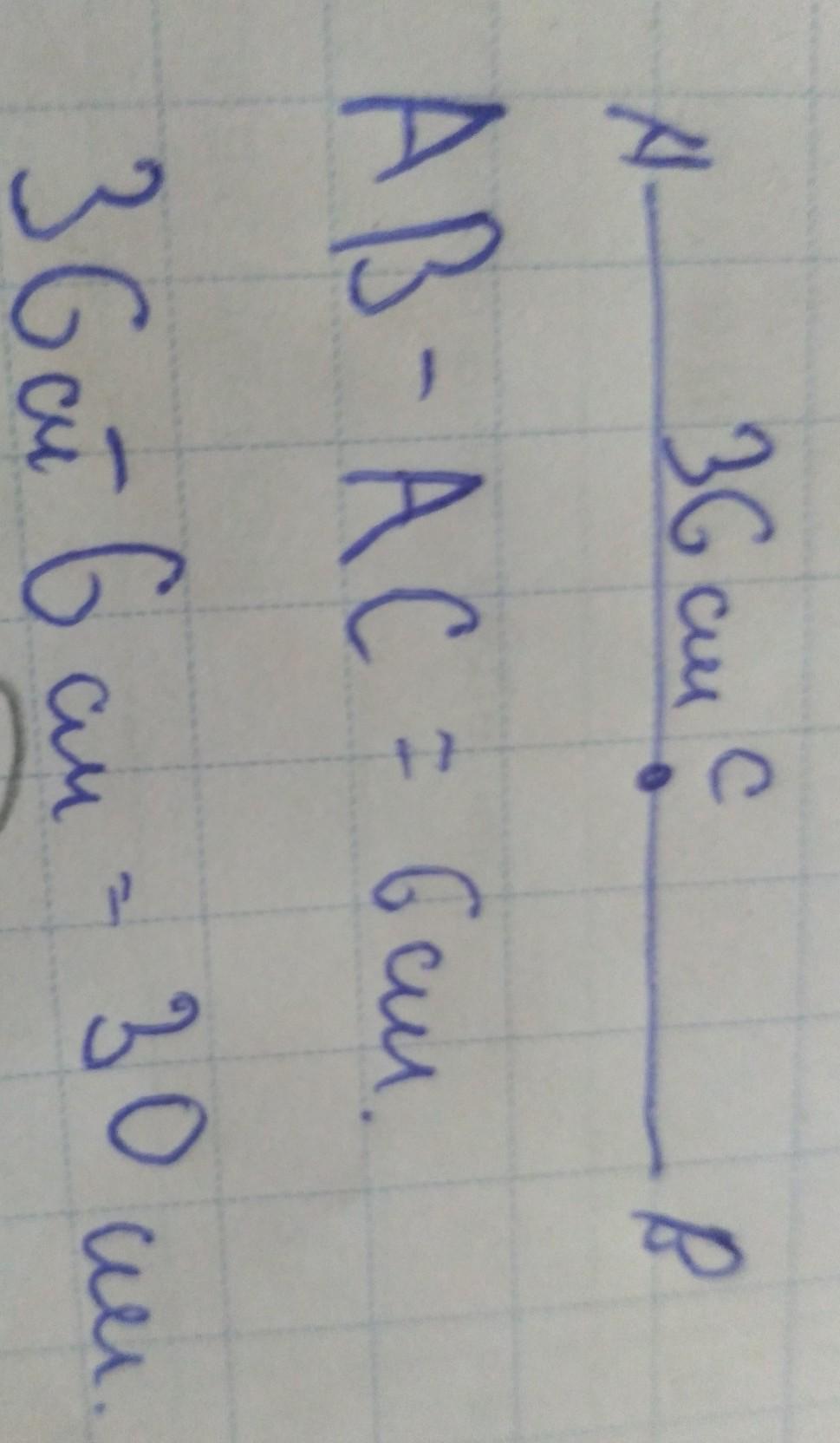 длина отрезка AB = 36 см. C лежит между точками A и B Найдите длину отрезка AC если AC - BC = 6 см