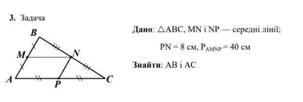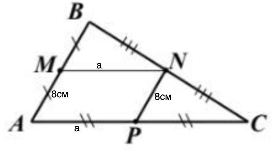- Средняя линия равна половине длины стороны, которую она не пересекает.