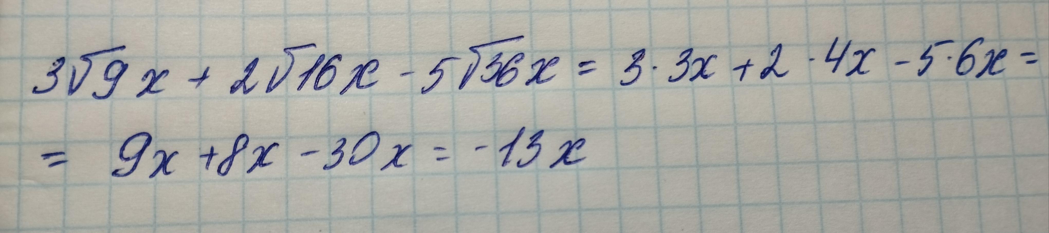 3✓9х+2✓16х -5✓36х Спростити вираз