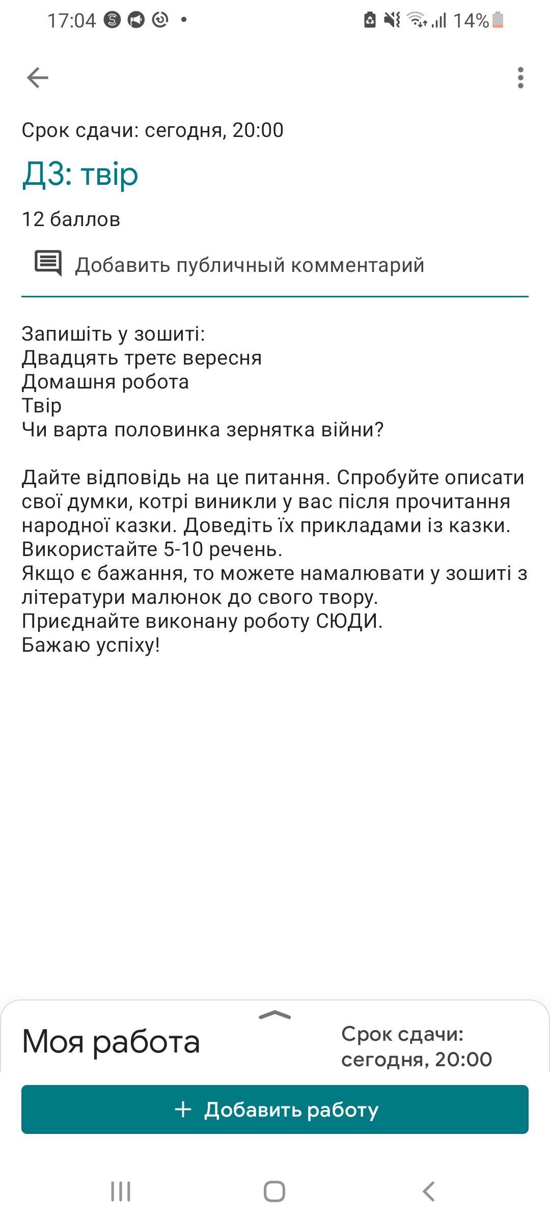 Ніщо не варте війни навіть пів зернини. сотні тисяч людей страждають зараз.деякі немають що їсти, що пити. Це дуже жахливо майже рік тому ми навіть не уявляли що таке війна, а зараз вона триває вже 9 місяців. Я сподіваюсь що зовсім скоро війна закінчиться
