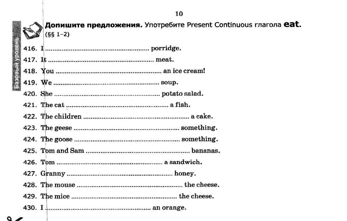10) Tom is eating a sandwich