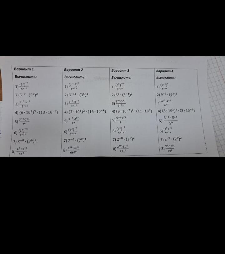 7) 3^-8×(3^6) ^2=3^-8×3^12=3^4=81