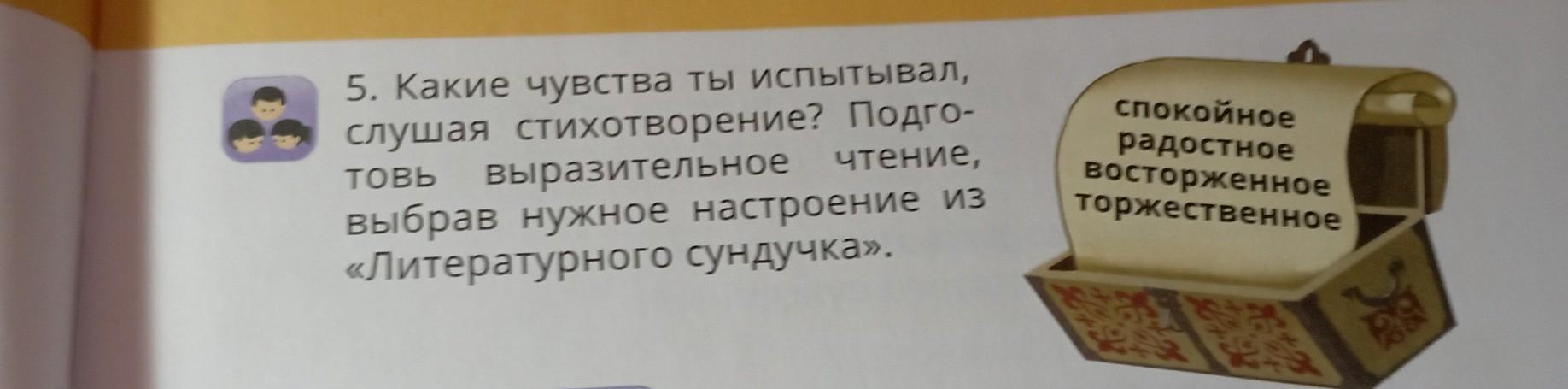 Какие чувства ты испытывал слушая стихотворение?Подготовь выразительное чтение выбрав нужное настроение из <<Литературного сундучка>>.