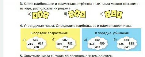 Пошаговое объяснение: 3. а)843 наибольшее 348 наименьшее б)650 наибольшее 560 наименьшее в) 971 наибольшее 179 наименьшее