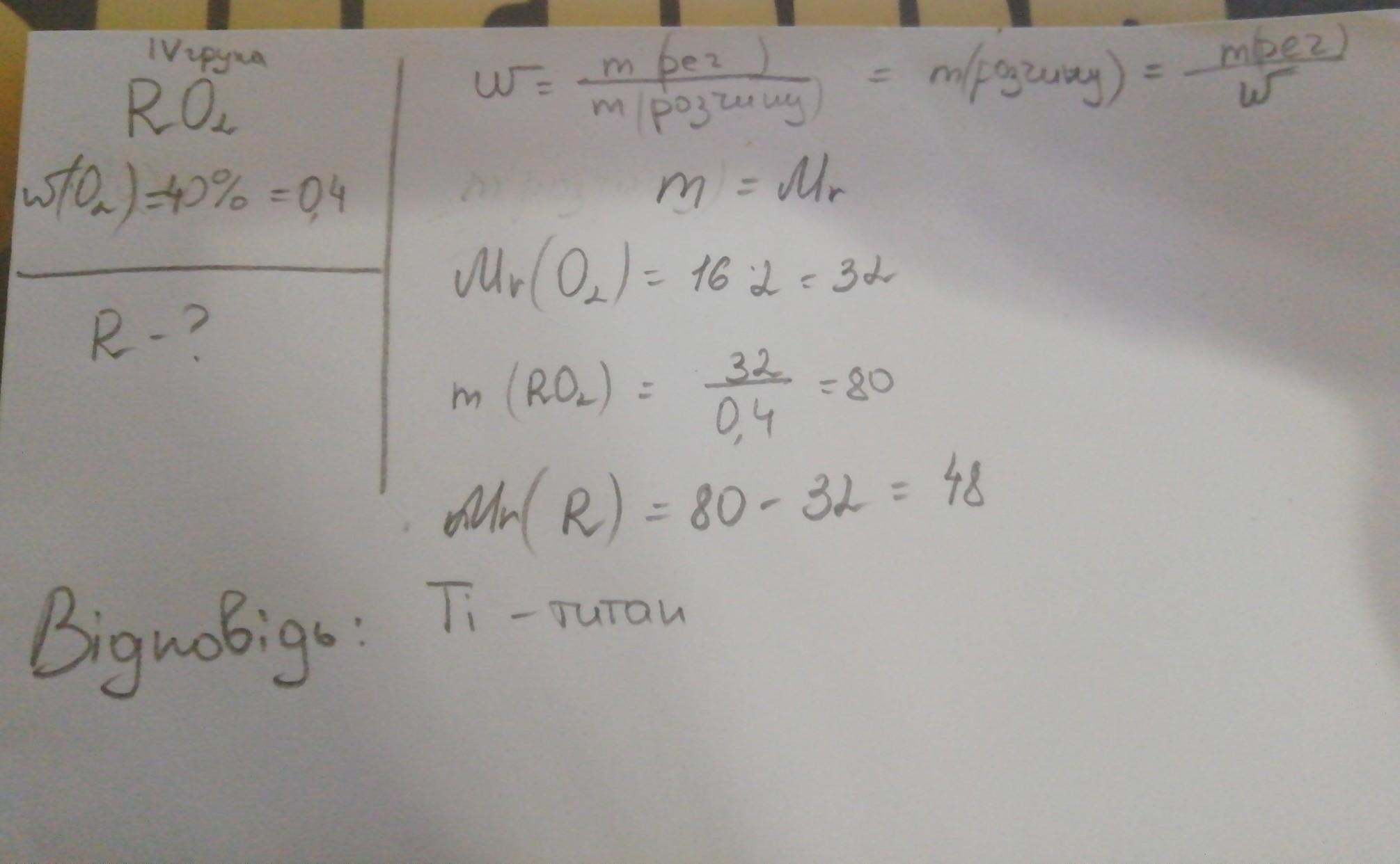 Елемент росташований в 4 групі.Масова частка оксигену у вищому оксиді цього елементу становить 40%.Визначити елемент