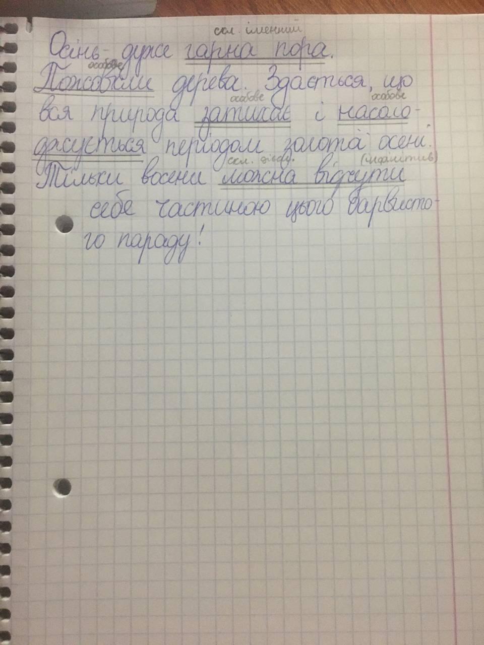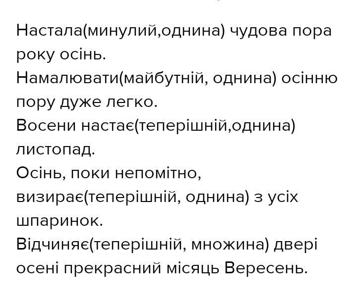 Написати 3 речення про осінь, підкреслити дієслова, надписати над дієсловом інфінітив чи особова форма.