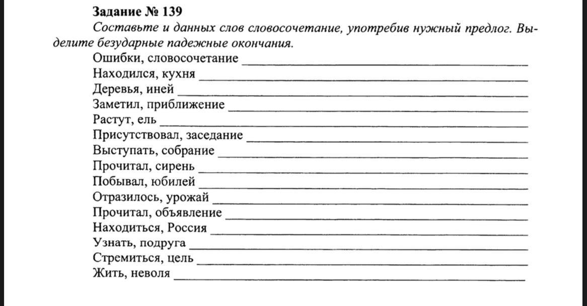 Составьте из данных слов словосочетание,употребив нужный предлог. Выделите безударные падежные окончания.