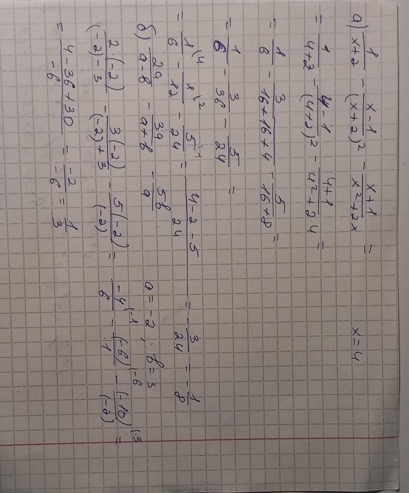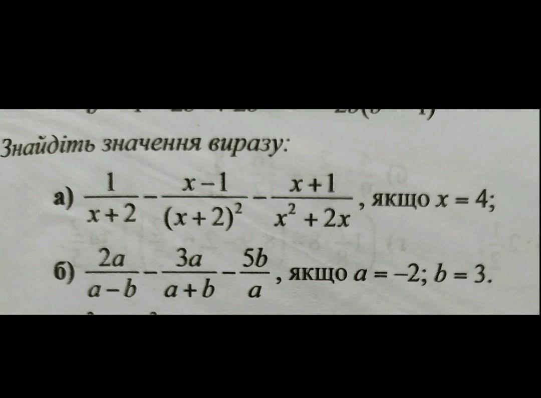 Знайдіть значення виразу: a) 1/x+2-x-1/(x+2)²-x+1/x²+2x, якщо x=4