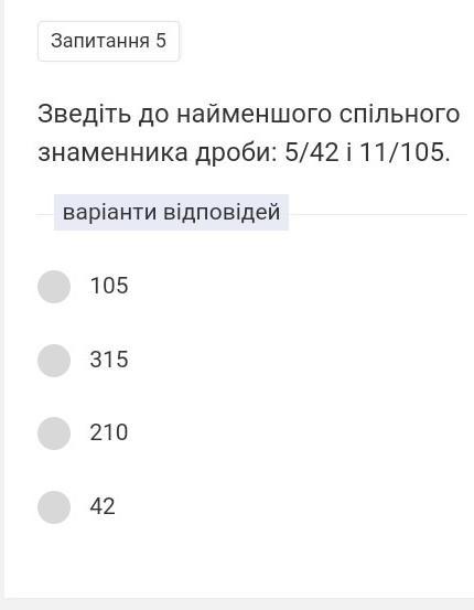 дріб 5/42 ми множемо на 5 = 25/210, а дріб 11/105 множемо на 2 = 22/210, спільний знаменник 210