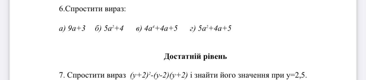 6 . а) 9а + 3 = 3( 3а + 1 ) ; в) 4а⁴ + 4а + 5 = 4( а⁴ + а + 1,25 ) ;
