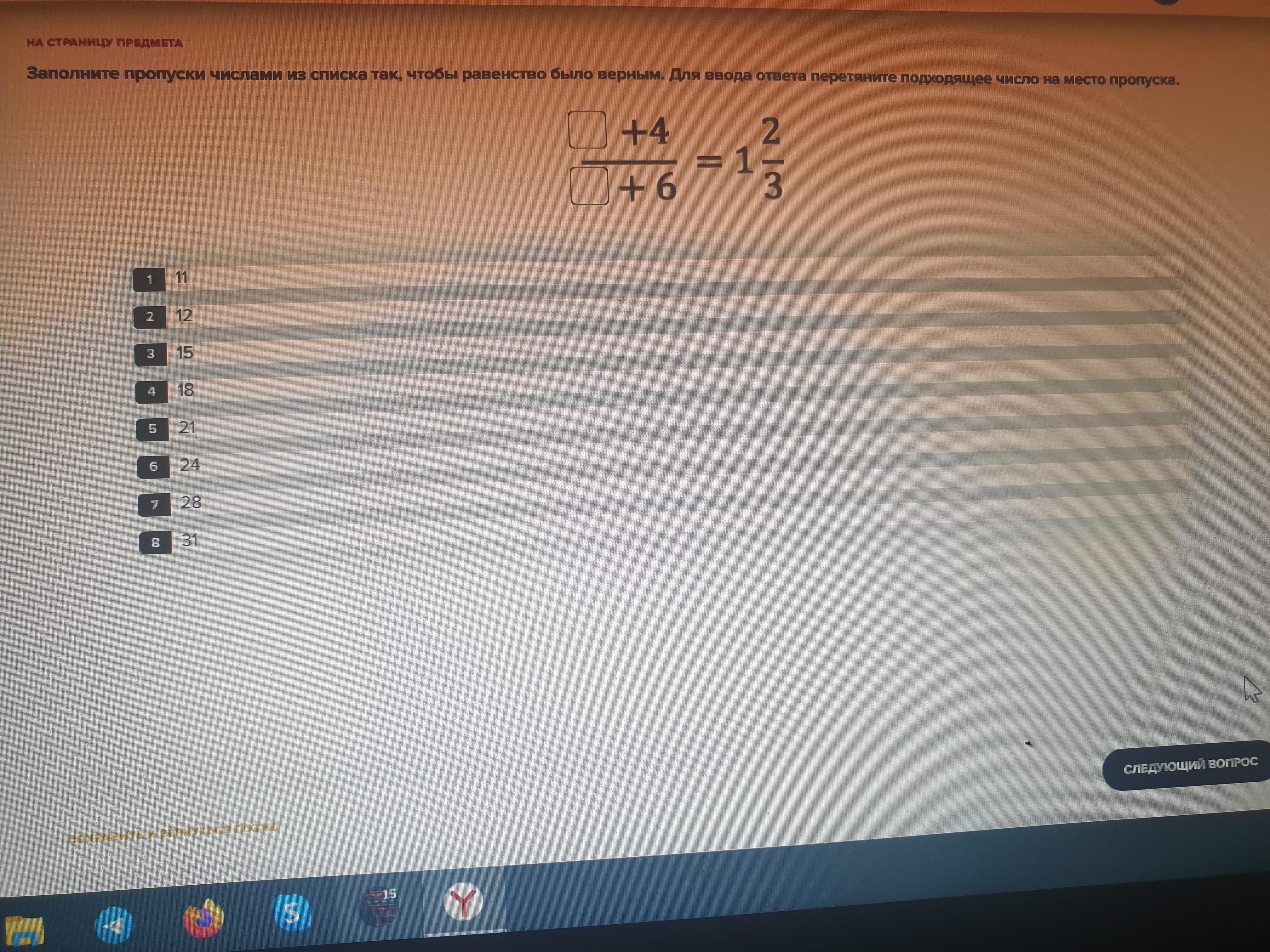(31+4)/(15+6) = 5/3 = 1 2/3