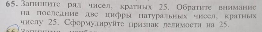 2, 3. кратных кратных 25. Обратите внимание натуральных чисел, кратных 65. Запишите ряд на последние две чисел, чисел, цифры две цифры числу 25. Сформулируйте признак делимости на 25. пж 20 балоов
