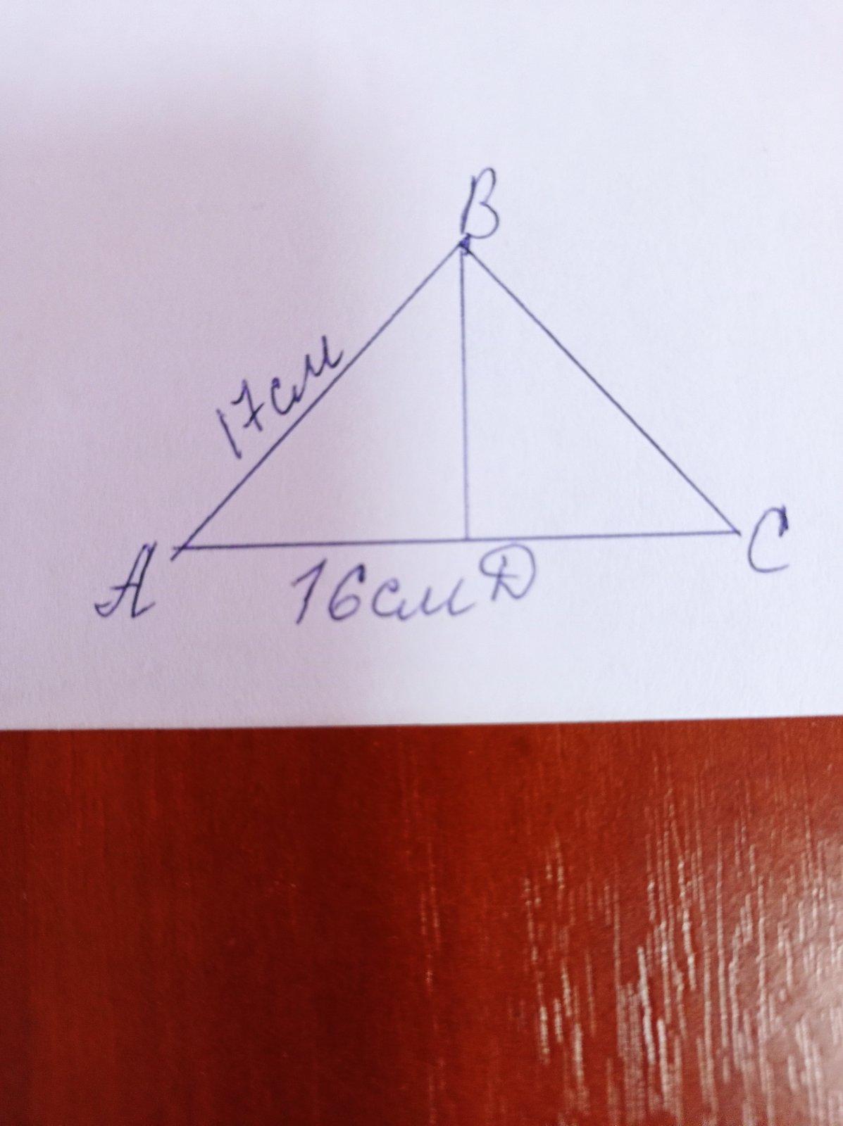 ΔАВС - рівнобедрений; АВ = ВС; АС = 16см; ВD⊥АС; АВ = 8см;