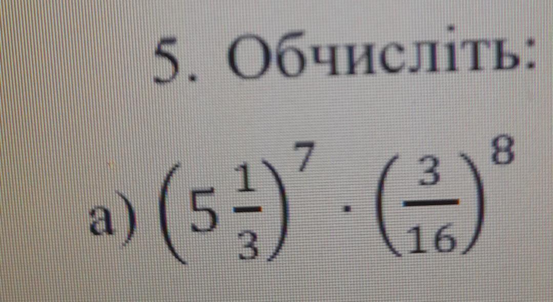 (5*1/3)^7 * (3/16)^7 * 3/16 = (16/3 * 3/16)^7 * 3/16 = 1 * 3/16 = 3/16