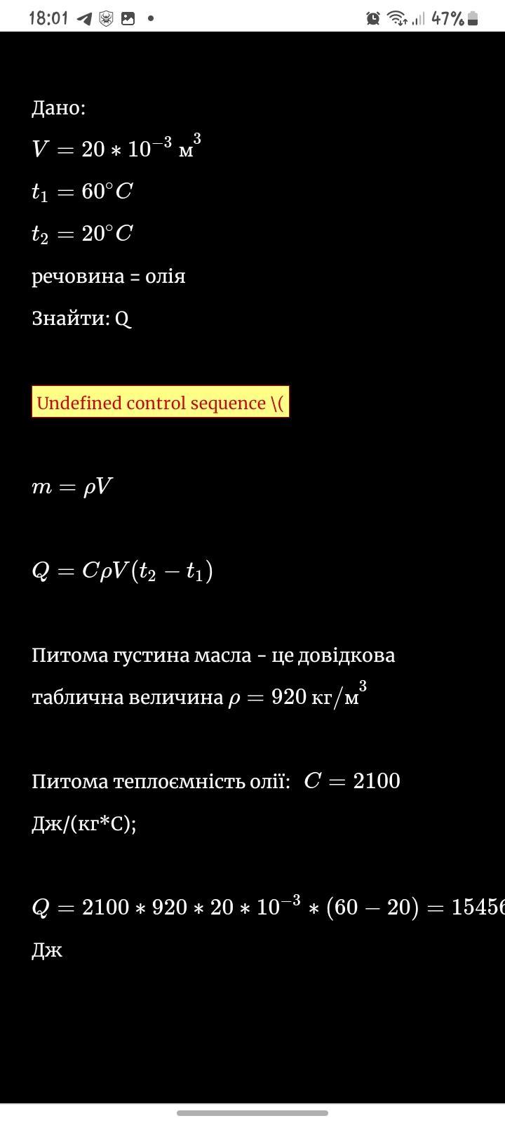 Задача 3. Яка кількість теплоти виділилася при охолодженні олії, об’єм якої 20 л, якщо